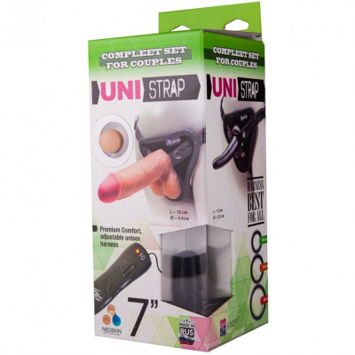 Страпон с 2 насадками и вибрацией Uni strap 7 Harness арт. 532313