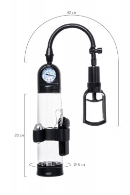 Для тренировки, а также чтобы подготовить себя к длительному и яркому сексу, вставьте свой пенис в колбу и откачайте воздух с помощью рычага. Благодаря отрицательному давлению увеличивается приток крови к половому члену, за уровнем давления удобно следить с помощью встроенного манометра. Прозрачный ABS-пластик позволяет наблюдать как пенис набирает силу и увеличивается в размере. А измерительная шкала позволит отслеживать результаты прямо в процессе. Для достижения ощутимых результатов рекомендуются систематические занятия по программе эффективного тренинга, которая входит в комплект.