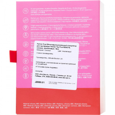 Partner Plus Remote изготовлен из приятного на ощупь материала, который легко чиститься. С ним можно использовать смазки на водной основе. Но стоит хранить отдельно от других силиконовых изделий.