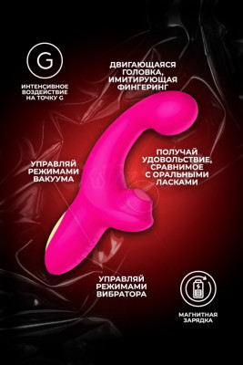 Мечтаешь о струйном оргазме? Твоя мечта станет ближе к осуществлению вместе с этим вибратором! Интенсивное воздействие на точку G, имитирующее фингеринг, вместе с любимой многими женщинами вакуумной стимуляцией клитора подарят невероятное удовольствие обладательнице этой игрушки.
