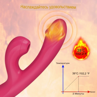 Вибромассажер-кролик с вакуумной стимуляцией и нагревом арт. ZD062-RD-BOX