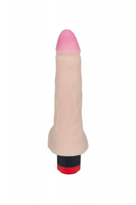 Вибромассажёр телесного цвета. Имеет форму члена с ярко-выраженной головкой. Необычайно приятный, рельефный, выполненный из «Неоскин» , передающий эффект мягкой реалистичной текстуры кожи, не имеет швов. Виброэлемент расположен по всей длине изделия. Степень вибрации регулируется при помощи кнопки, расположенной в основании.