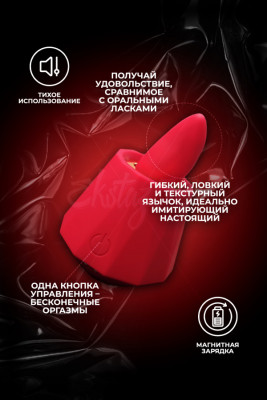 Любите оральные ласки? Тогда эта игрушка не оставит вас равнодушной! Представляем вам вибратор с язычком из медицинского силикона, созданный специально для удовольствия любительниц оральных ласк. Ваше удовольствие будет усилено благодаря вибрации и движению язычка, который работает в 10-ти разных режимах стимуляции. Этот вибратор идеально подойдет для внешнего воздействия на эрогенные зоны и нежного внутреннего массажа, так как его язычок имеет оптимальную длину 2,5 см. Будьте уверены в водонепроницаемости этой игрушки, она без проблем может использоваться в воде. Стимулятор изготовлен из мягкого и приятного силикона, уход за которым не составит большого труда. Также, чтобы сделать ваше удовольствие более приятным, совместно с игрушкой мы рекомендуем использовать смазку на водной основе.