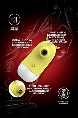 Двусторонний дизайн предлагает одновременно вакуумное стимулирование в верхней части и игривый язычок в нижней части игрушки, что делает процесс расслабляющим и невероятно приятным. Откройте для себя новые грани удовольствия!