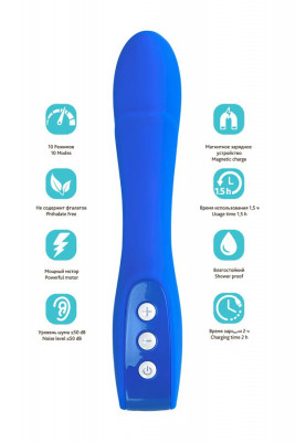 Для удобства использования кнопки устройства подсвечиваются во время включения и в процессе работы. К вашим услугам десять режимов вибрации и мощный мотор. Изготовлен из легкого в эксплуатации, нетоксичного, гипоаллергенного силикона.